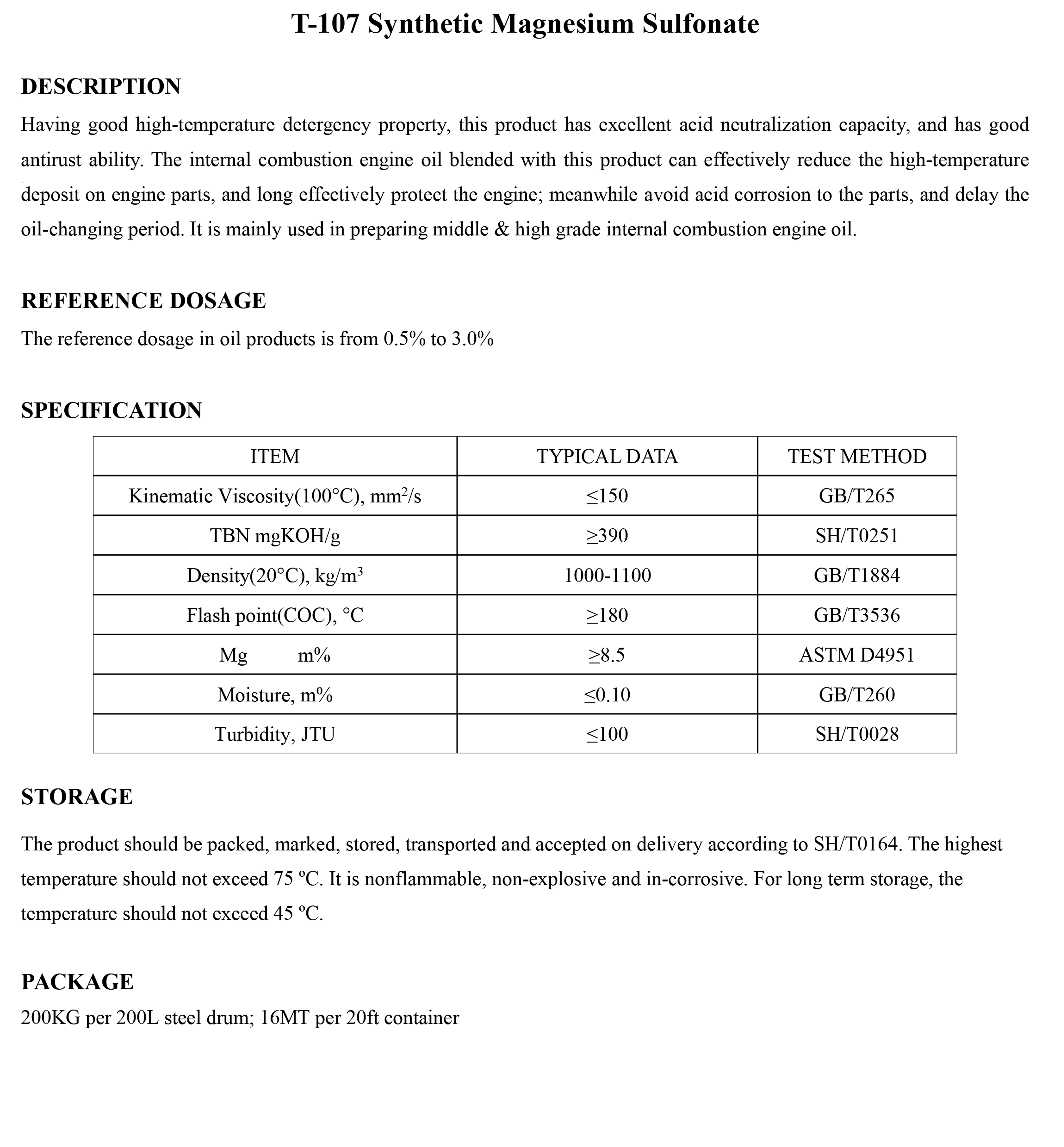 T-107 Synthetic Magnesium Sulfonate-Detergents-錦州新興石油添加劑有限責(zé)任公司
