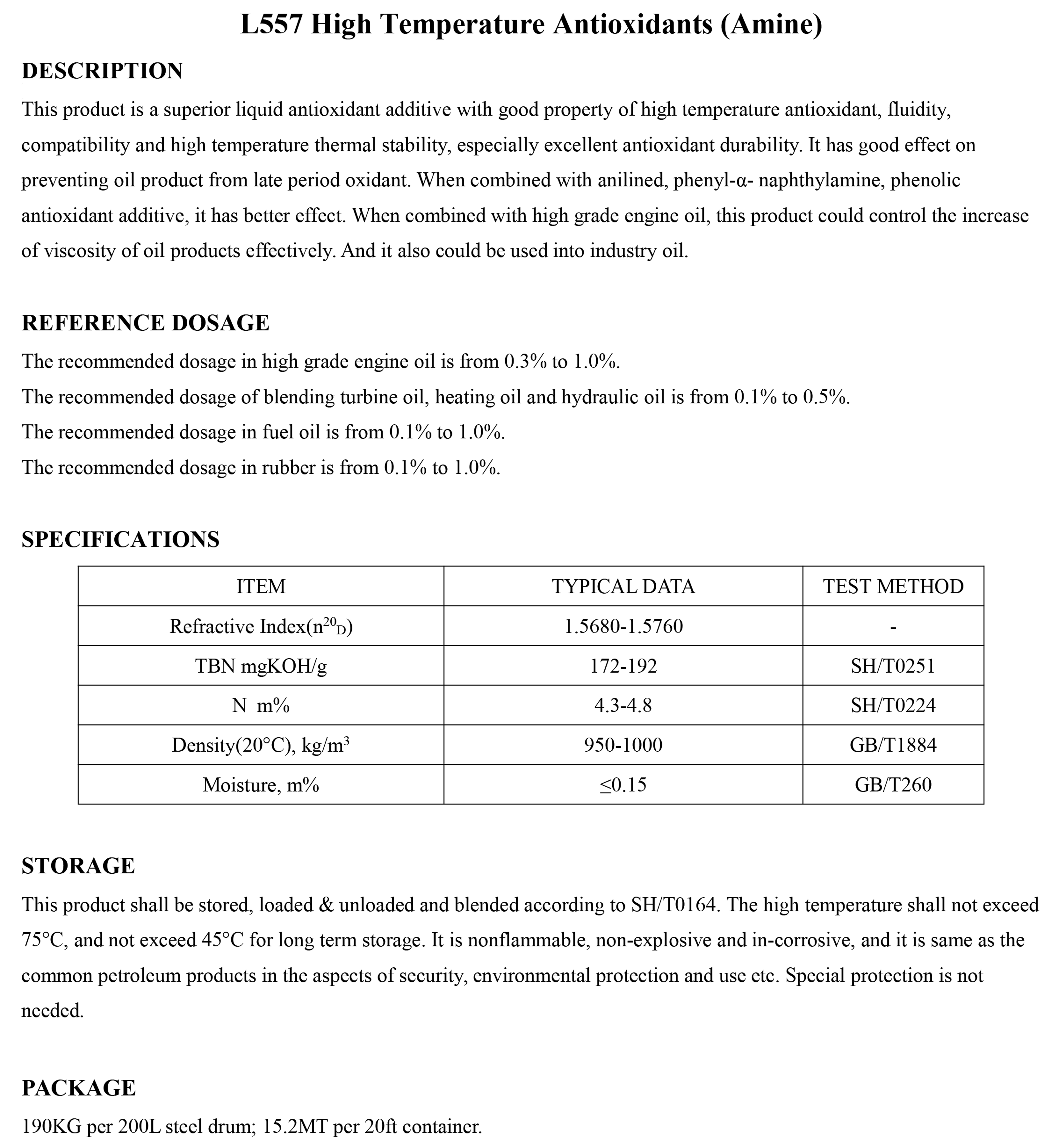 L557 High Temperature Antioxidants (Amine)-Antioxidant and Antiglue Additive-錦州新興石油添加劑有限責(zé)任公司
