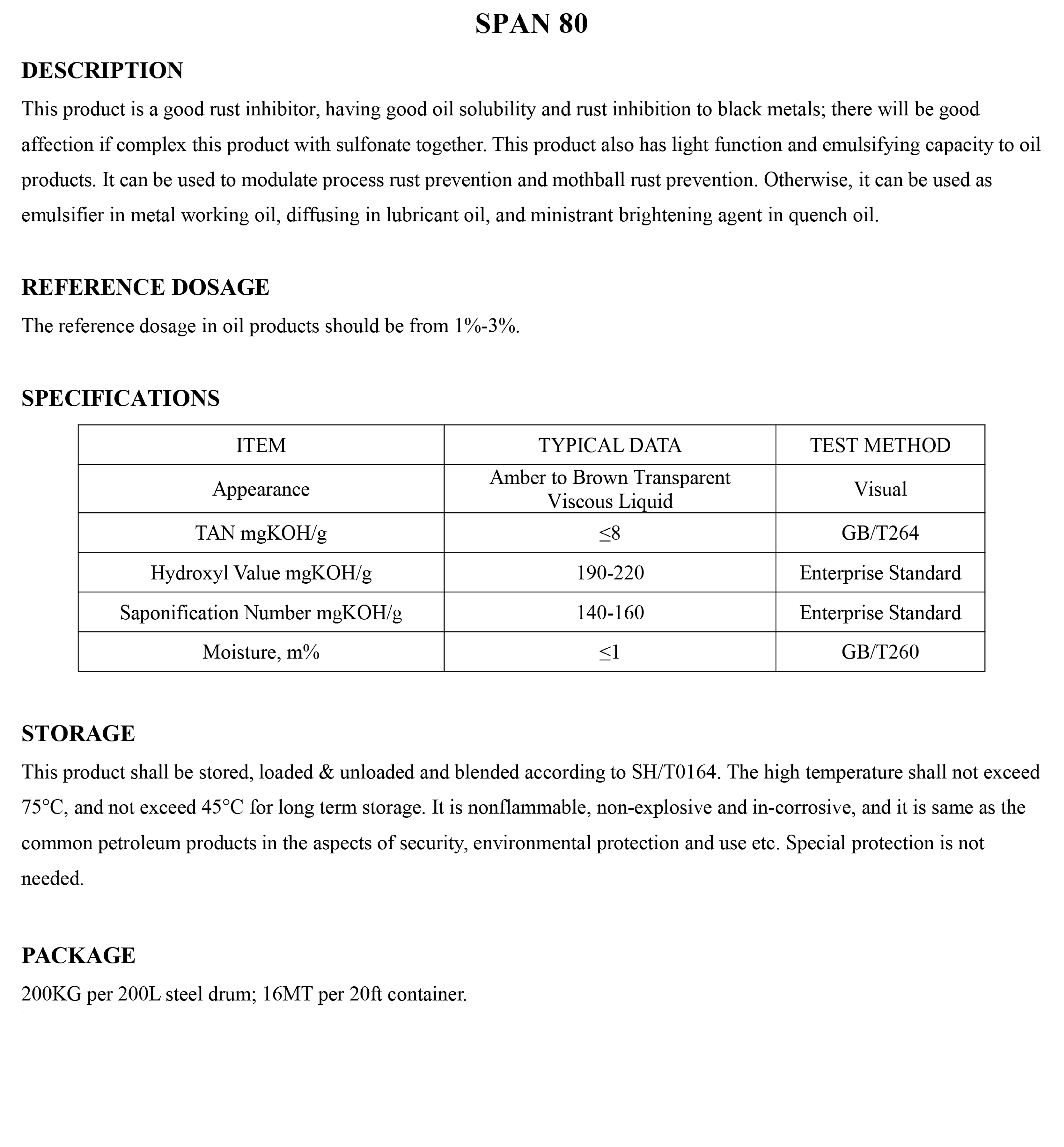 SPAN 80-Antirust Additive-錦州新興石油添加劑有限責任公司