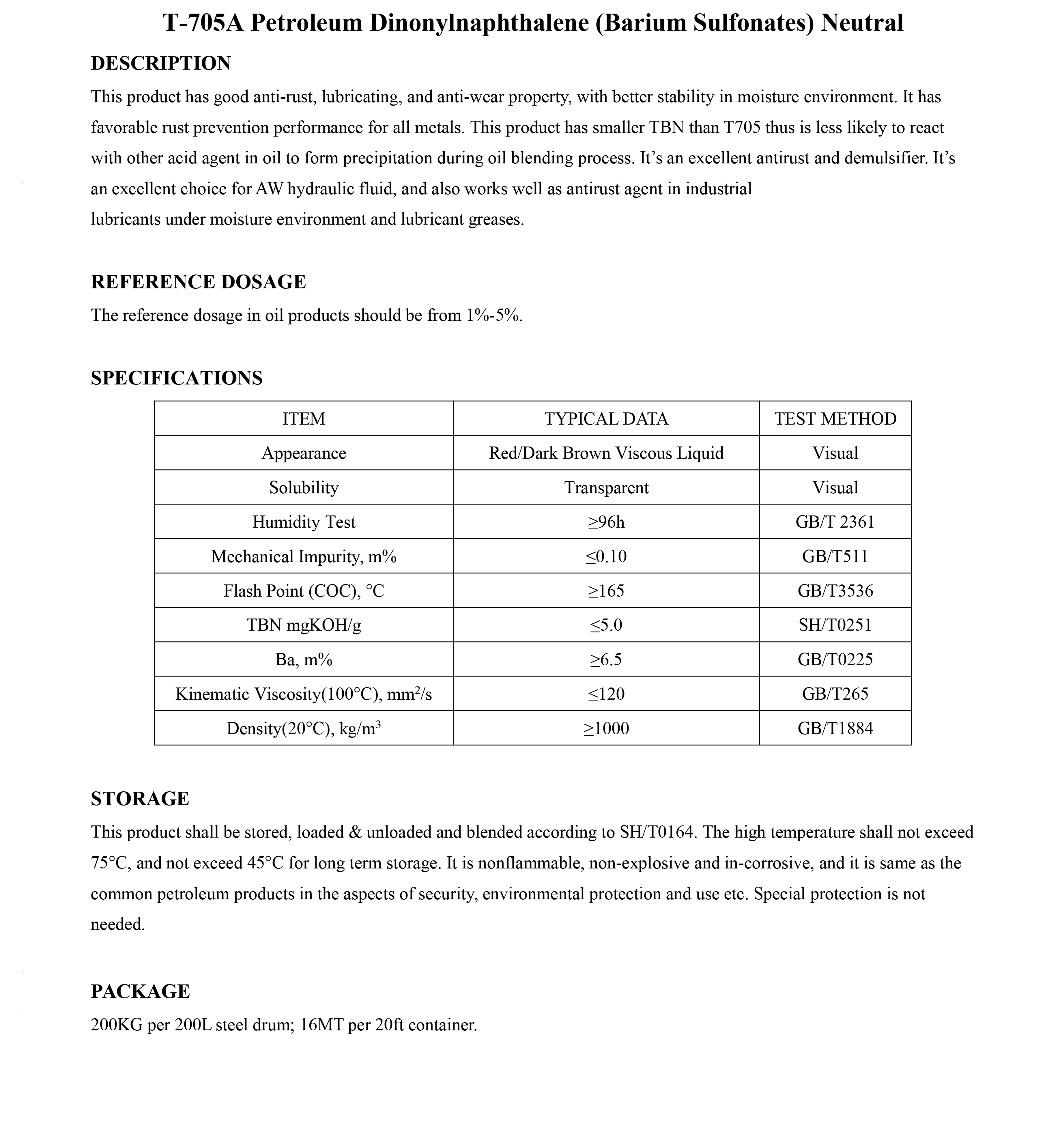 T-705A Petroleum Dinonylnaphthalene (Barium Sulfonates) Neutral-Antirust Additive-錦州新興石油添加劑有限責(zé)任公司