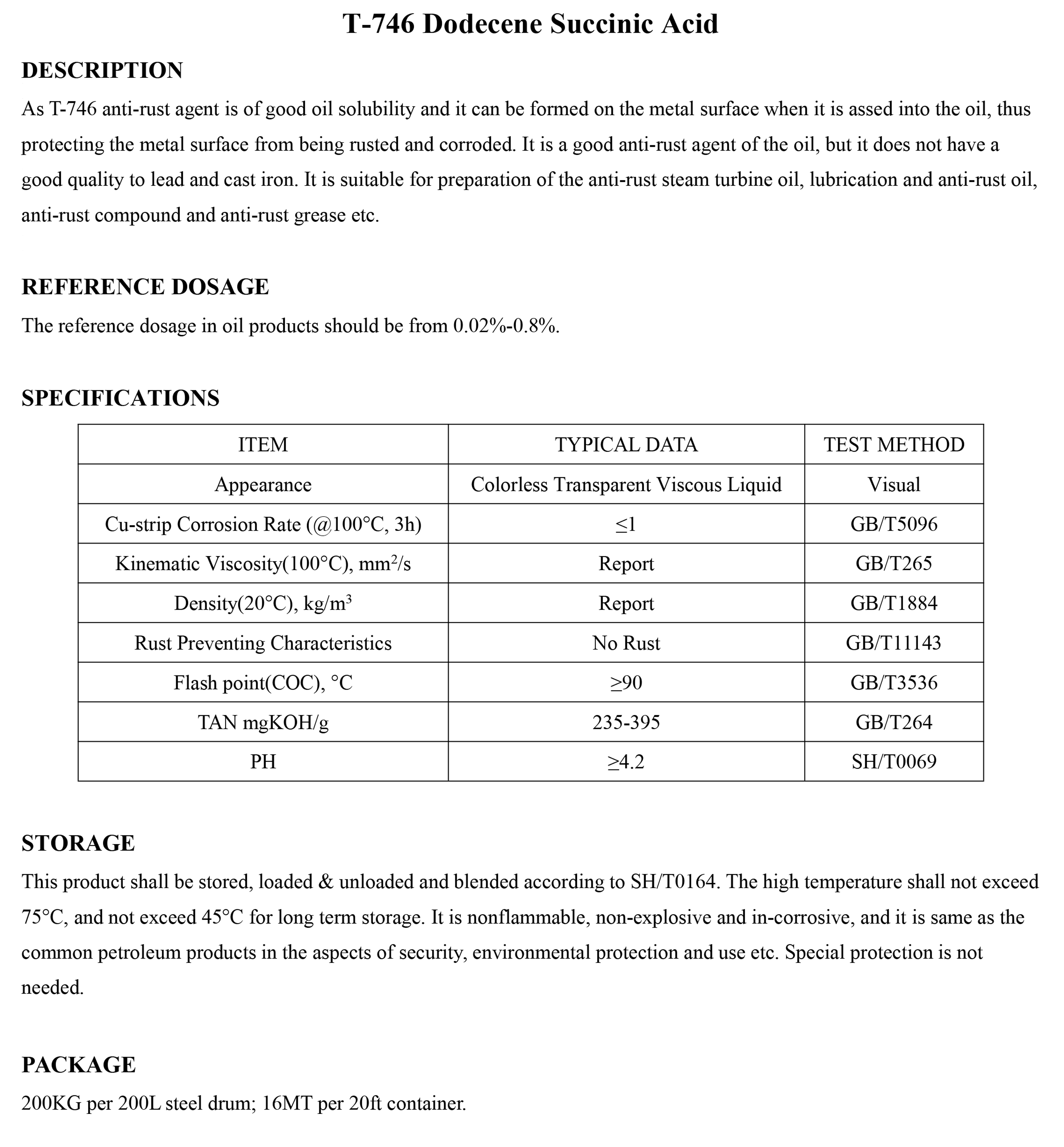 T-746 Dodecene Succinic Acid-Antirust Additive-錦州新興石油添加劑有限責(zé)任公司
