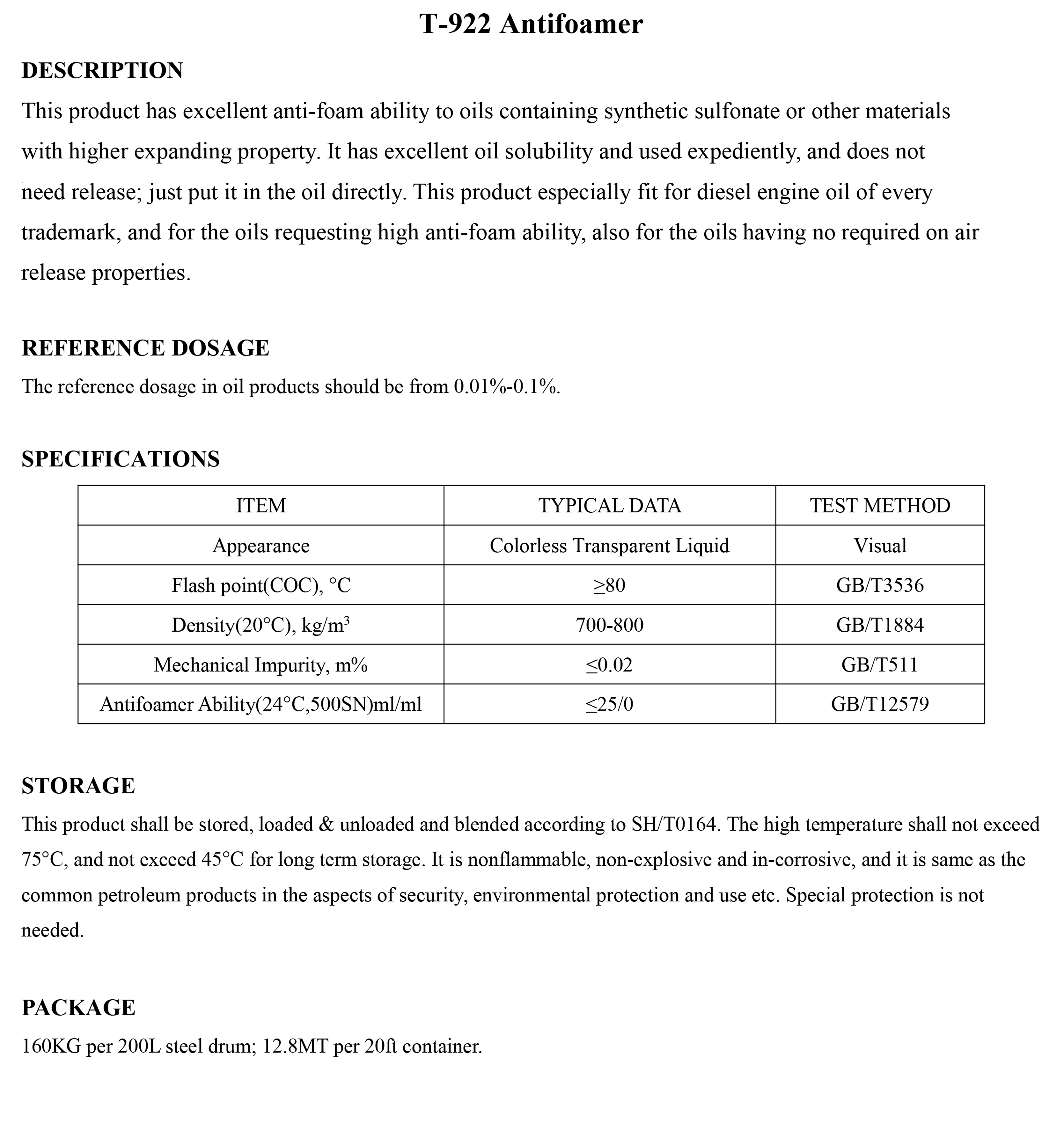T-922 Antifoamer-Antifoamer-錦州新興石油添加劑有限責(zé)任公司