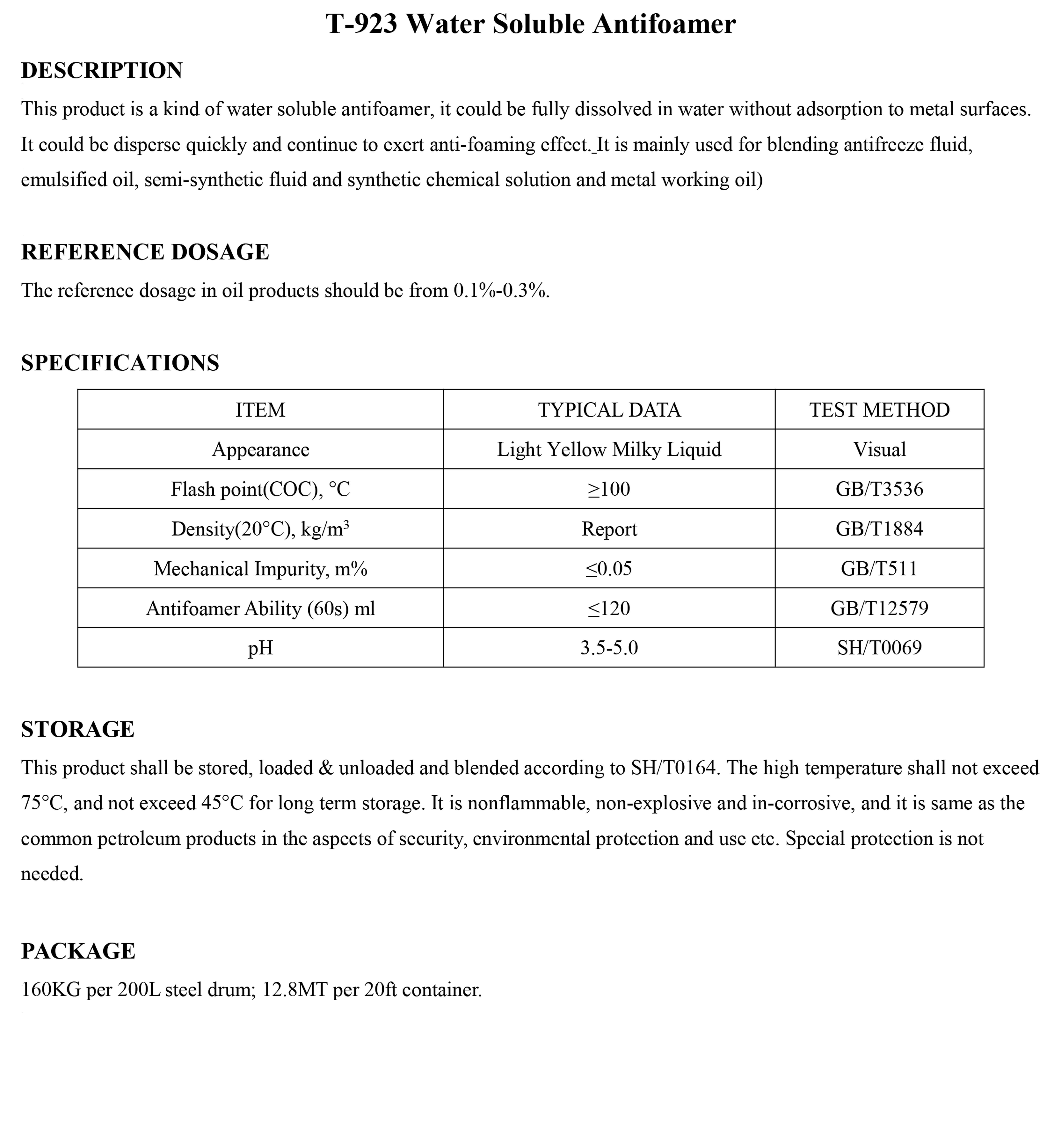 T-923 Water Soluble Antifoamer-Antifoamer-錦州新興石油添加劑有限責任公司