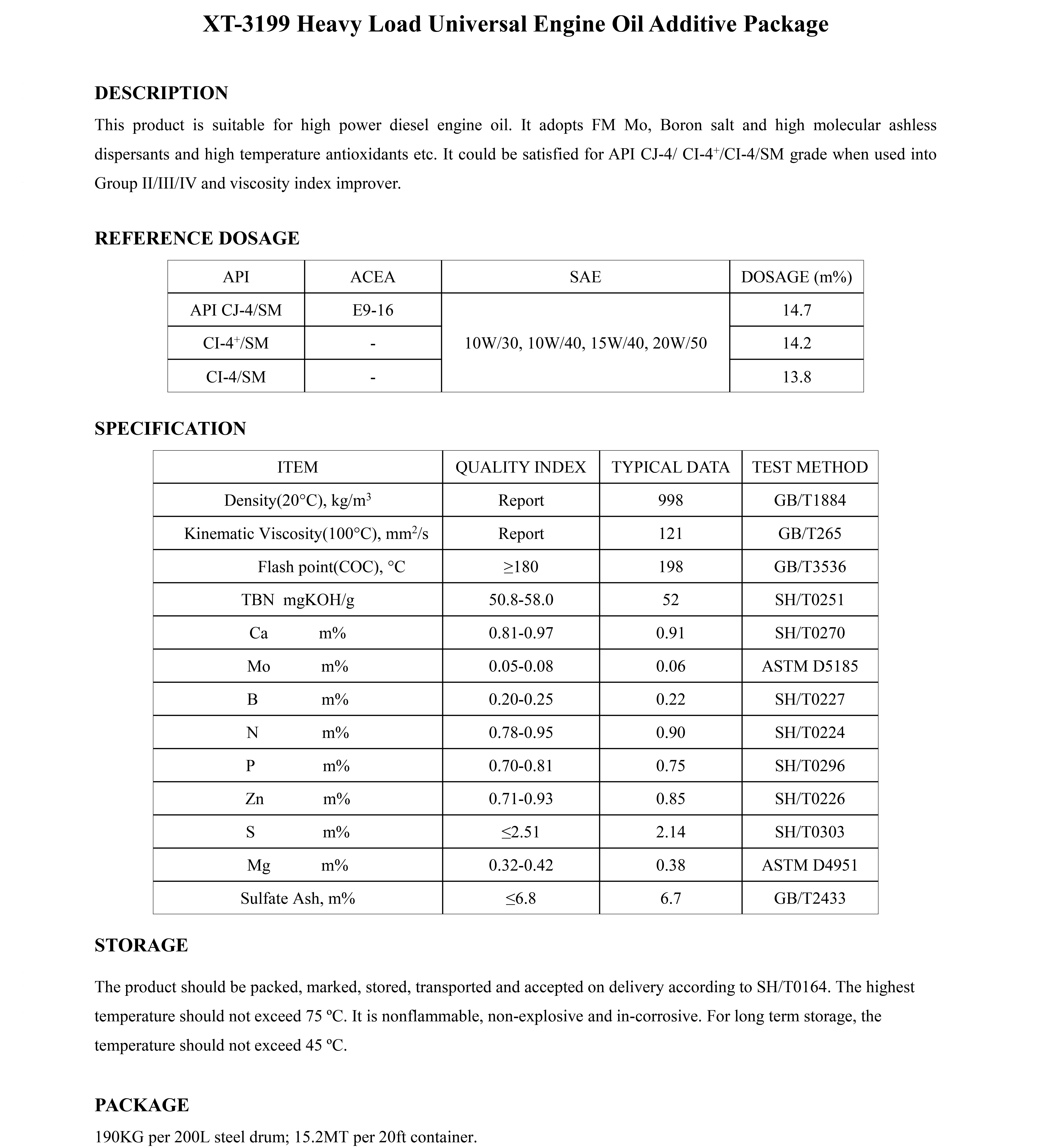 XT-3199 Heavy Load Universal Engine Oil Additive Package-Engine Oil Additive Package-錦州新興石油添加劑有限責(zé)任公司