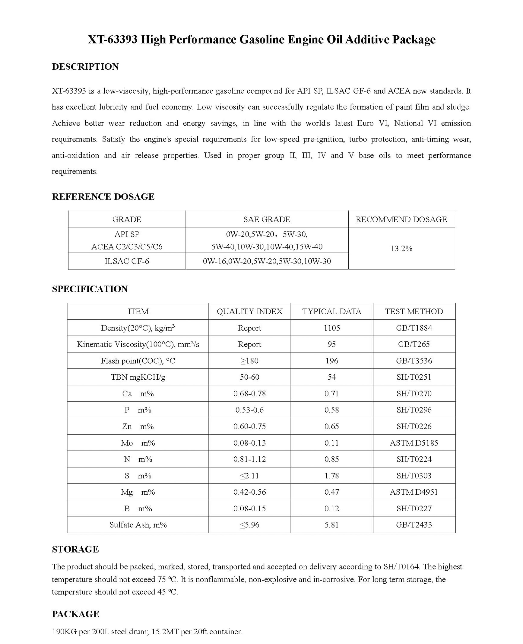 XT-63393 High Performance Gasoline Engine Oil Additive Package-Engine Oil Additive Package-錦州新興石油添加劑有限責(zé)任公司