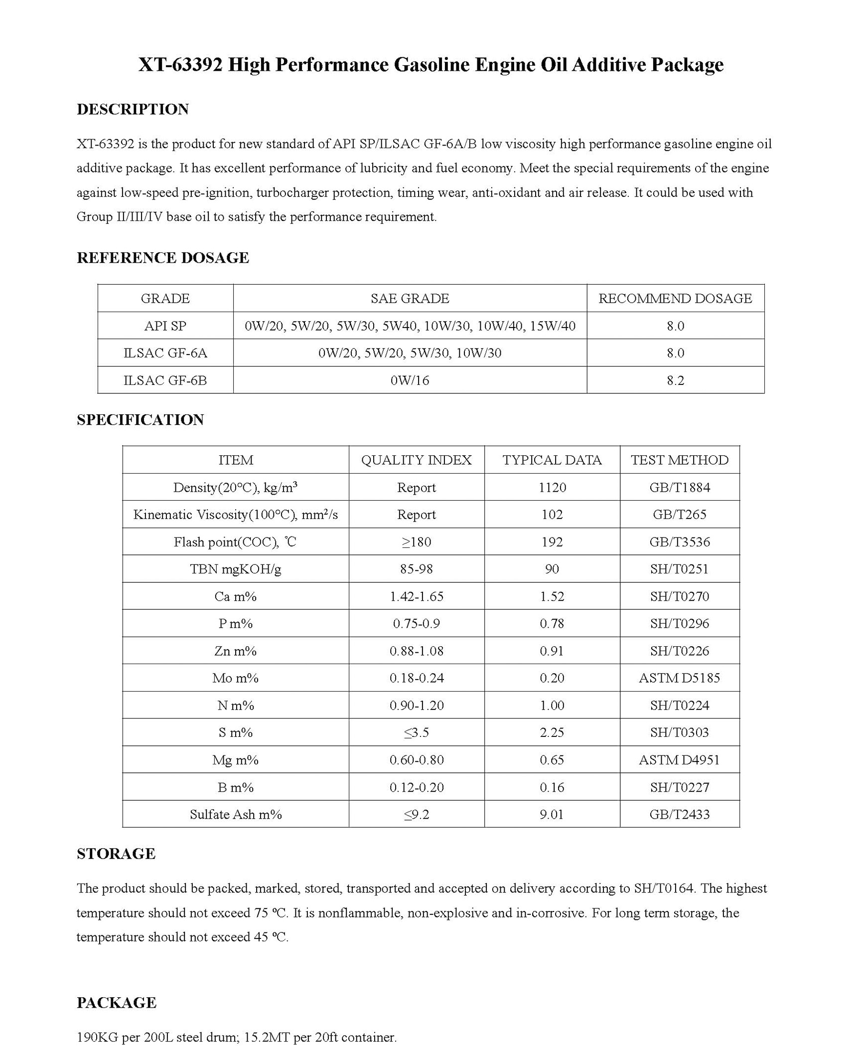 XT-63392 High Performance Gasoline Engine Oil Additive Package-Engine Oil Additive Package-錦州新興石油添加劑有限責(zé)任公司