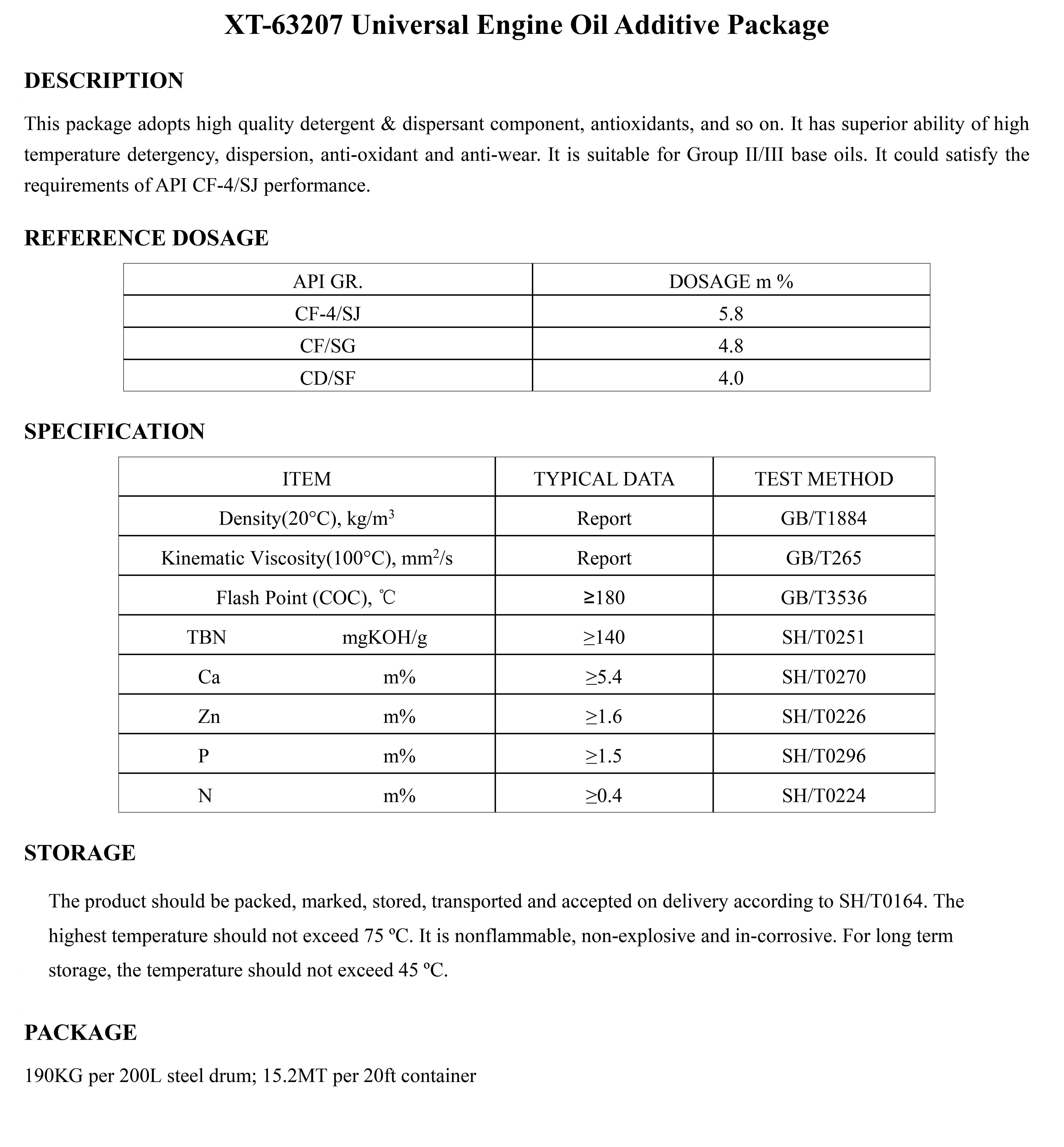 XT-63207 Universal Engine Oil Additive Package-Engine Oil Additive Package-錦州新興石油添加劑有限責任公司