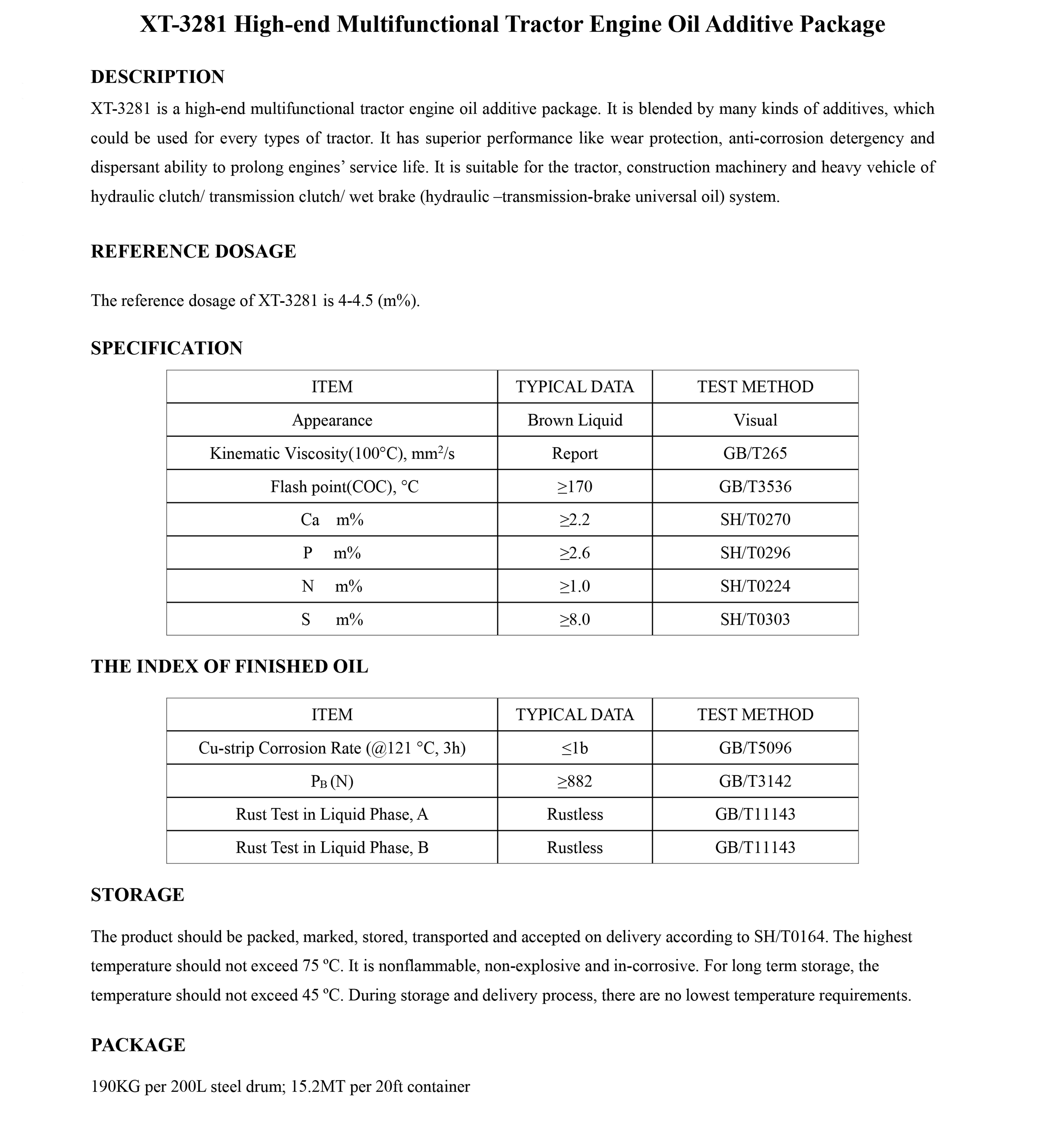 XT-3281 High-end Multifunctional Tractor Engine Oil Additive Package-Engine Oil Additive Package-錦州新興石油添加劑有限責(zé)任公司