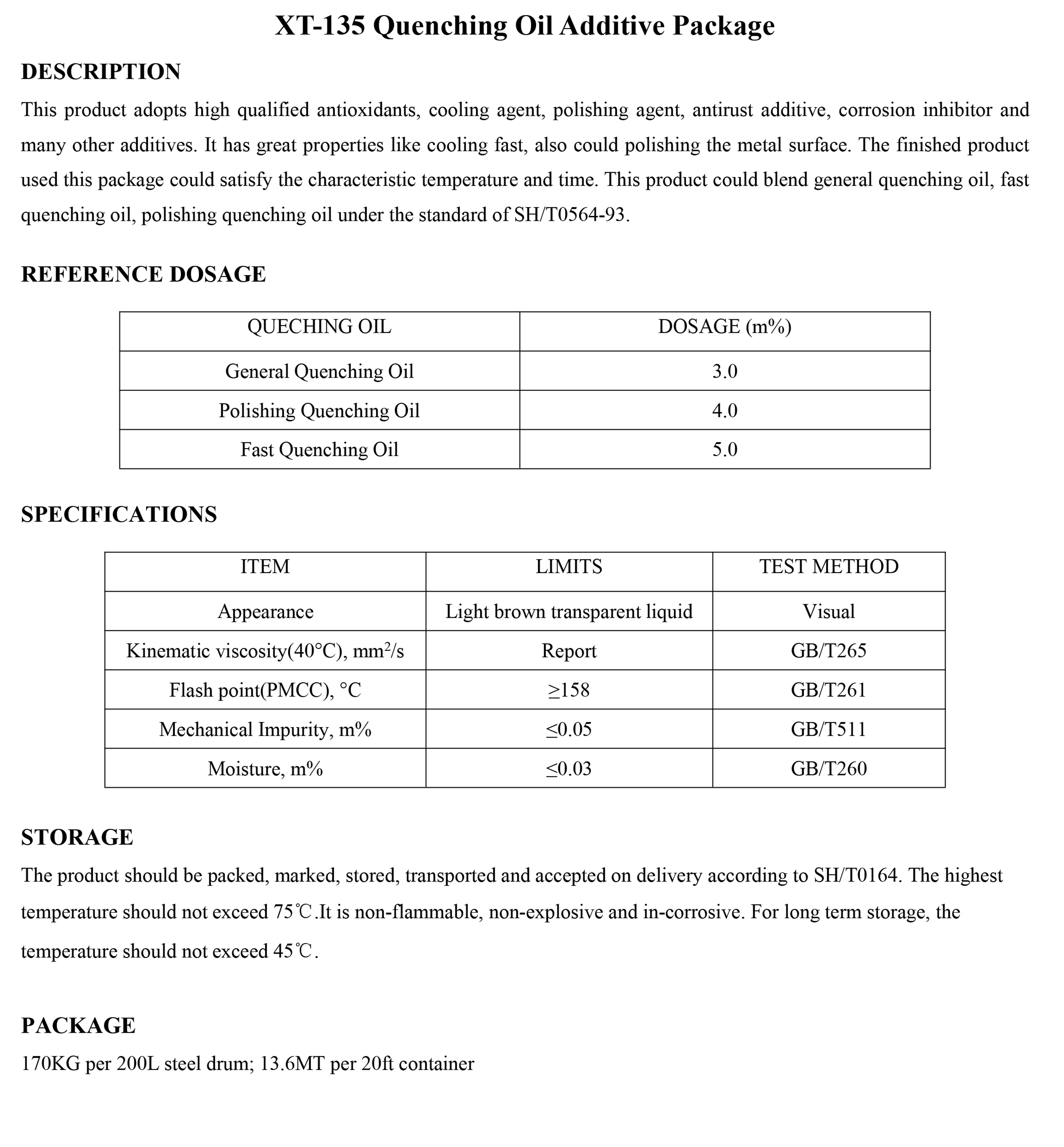 XT-135 Quenching Oil Additive Package-Industrial Oil Additive Package-錦州新興石油添加劑有限責(zé)任公司