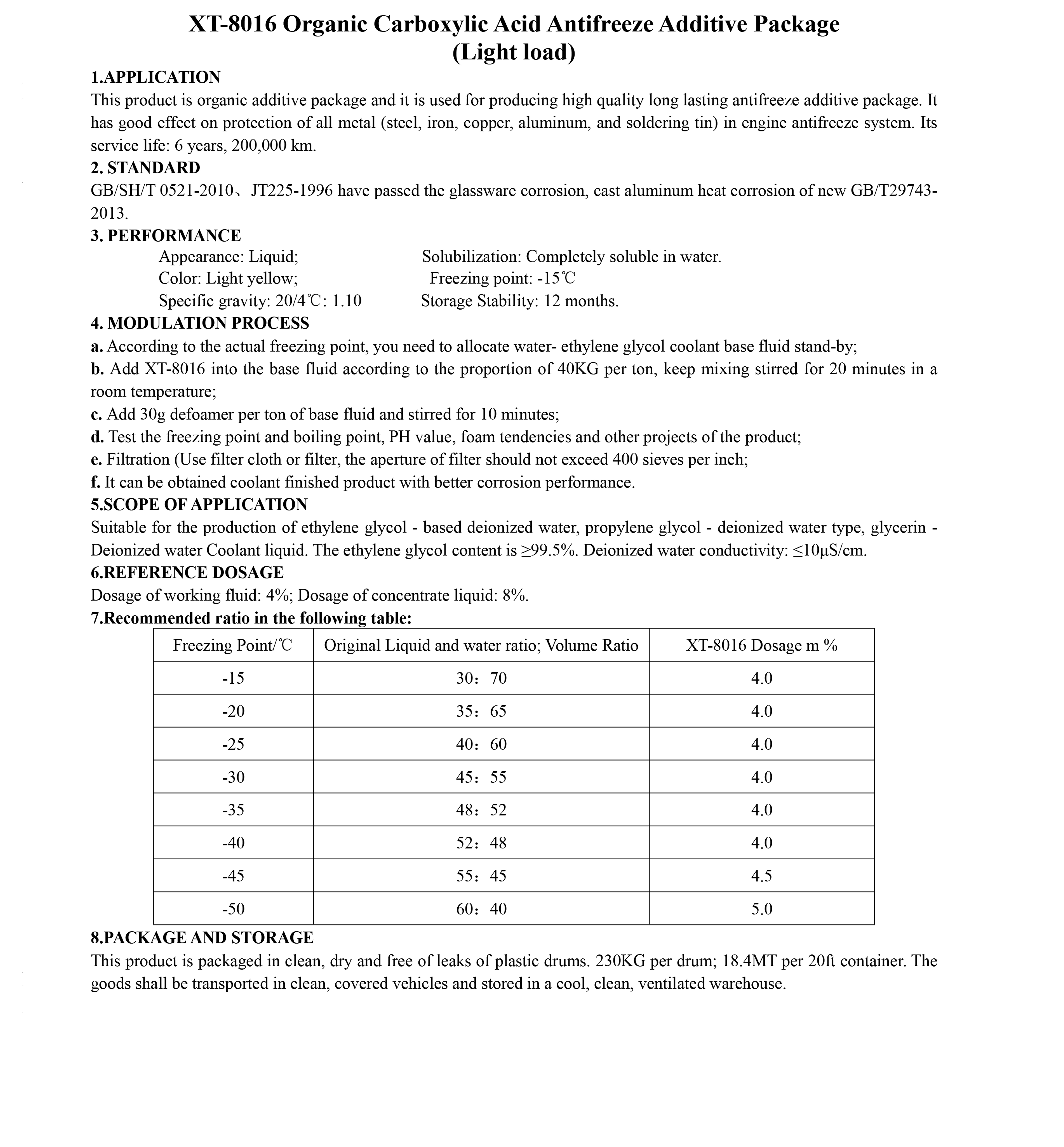 XT-8016 Organic Carboxylic Acid Antifreeze Additive Package (Light load)-Antifreeze Fluid Additive Package-錦州新興石油添加劑有限責(zé)任公司
