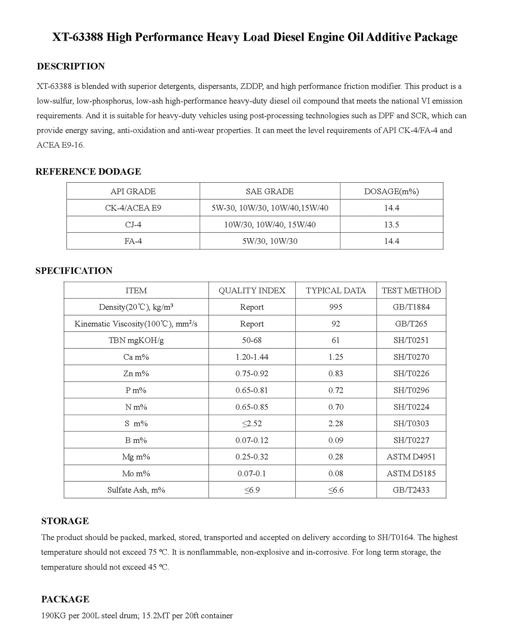 XT-63388 High Performance Heavy Load Diesel Engine Oil Additive Package-Engine Oil Additive Package-錦州新興石油添加劑有限責任公司