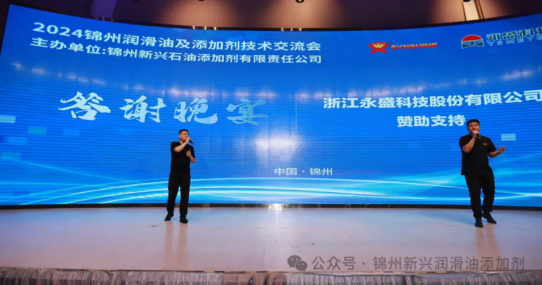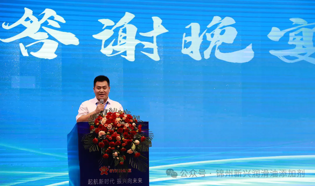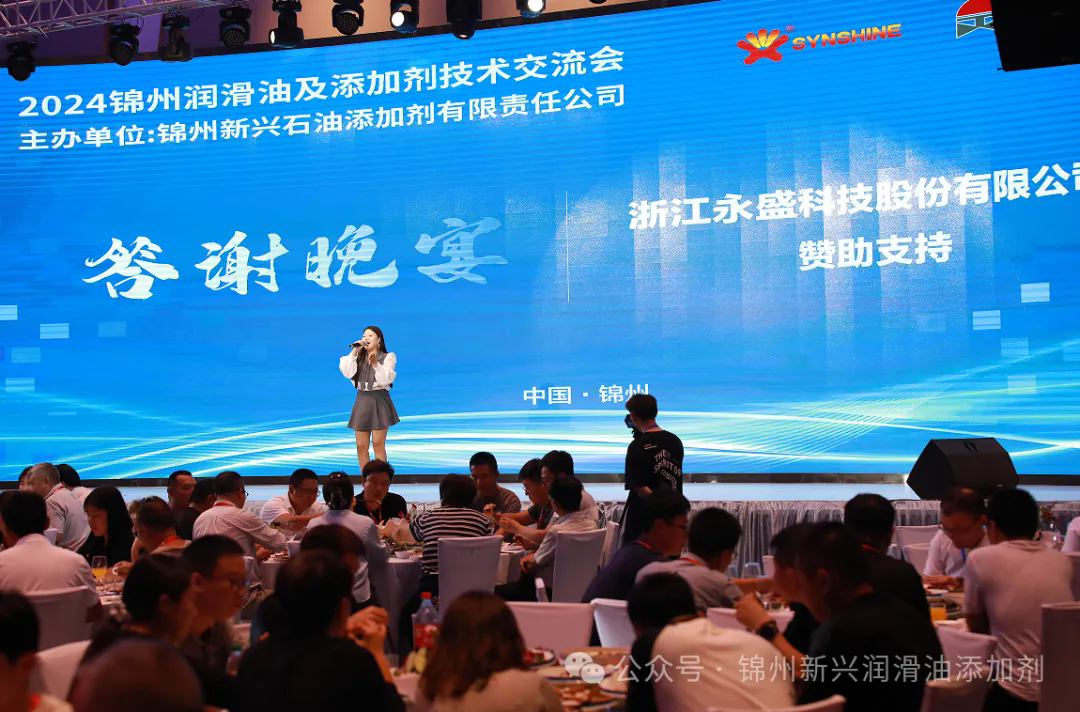 晚宴開場(chǎng)由錦州新興石油添加劑有限責(zé)任公司副總經(jīng)理李波致辭,晚宴贊助商浙江永盛科技有限公司銷售總監(jiān)張少明為大家送上了祝福。
